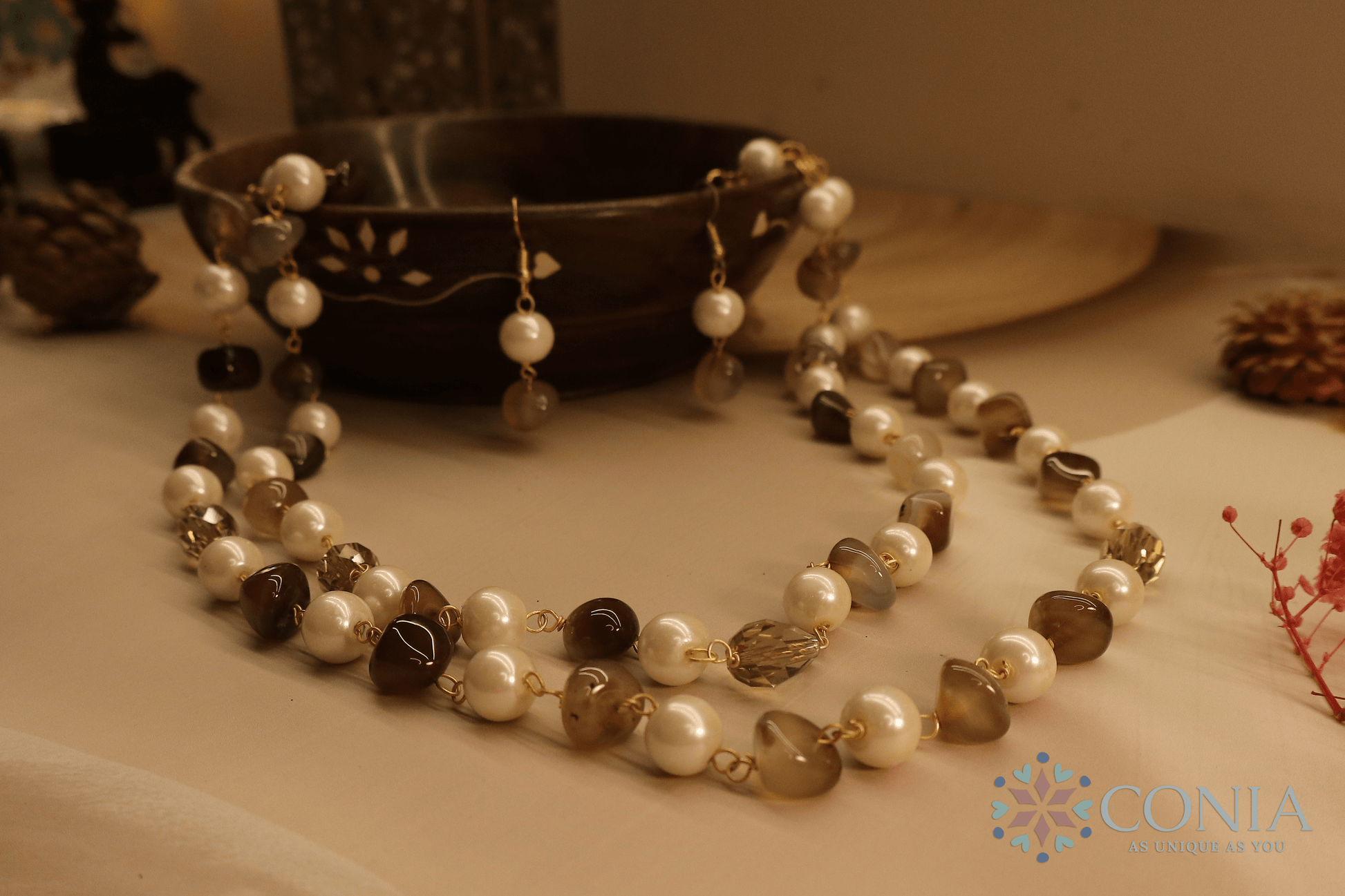 Brown Pearl Elegance Stone Necklace