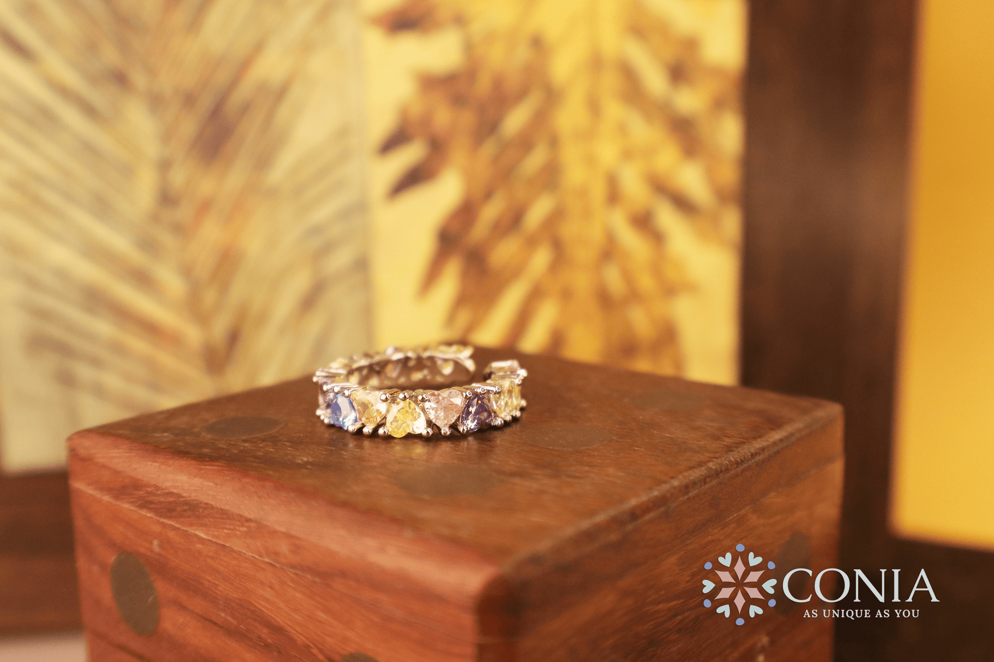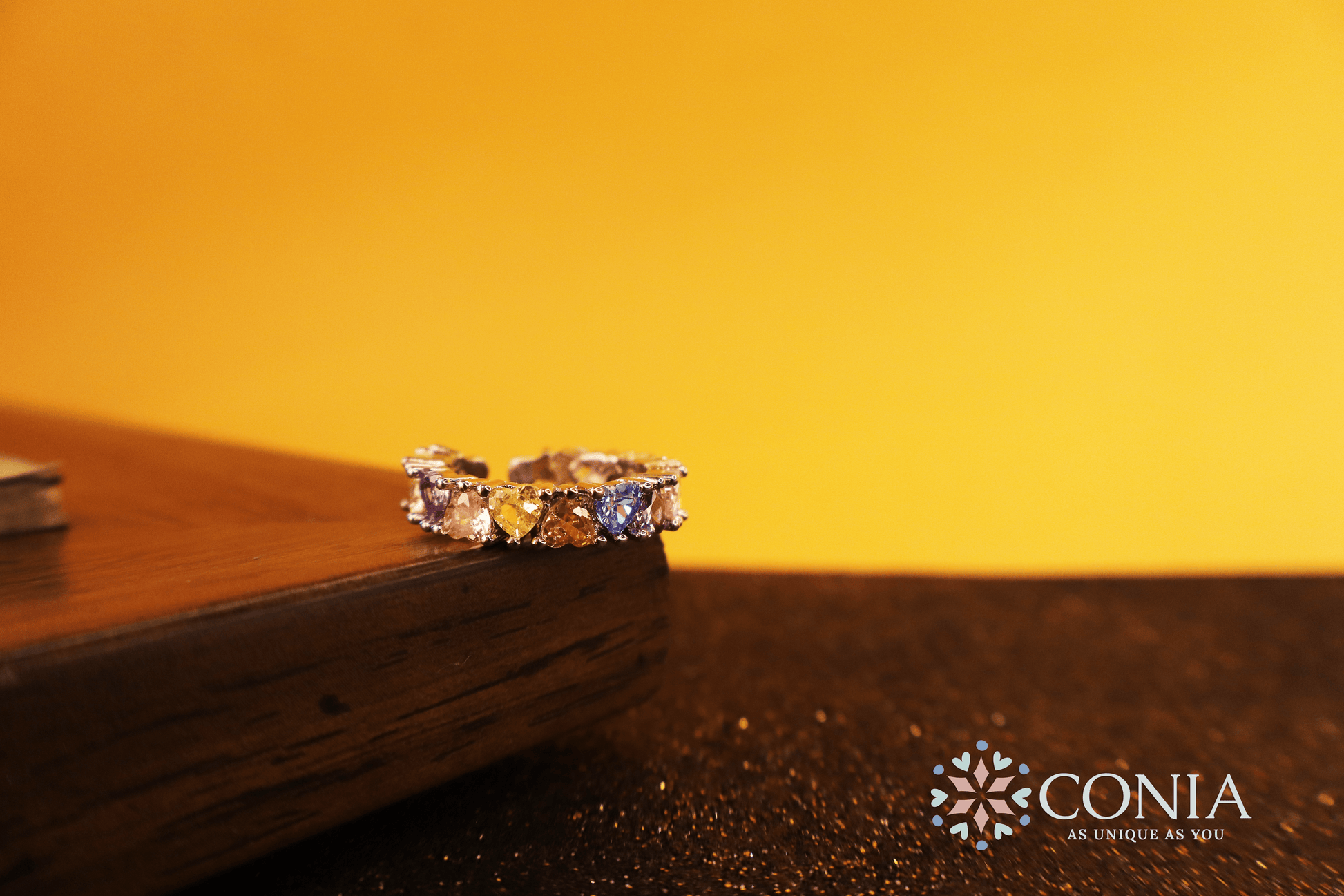 The adjustable band offers a perfect, customizable fit for any finger, making it versatile and comfortable to wear all day long. Whether you're dressing up for a special occasion or adding a splash of color to your everyday ensemble, this ring is a must-have accessory that seamlessly blends elegance with fun.