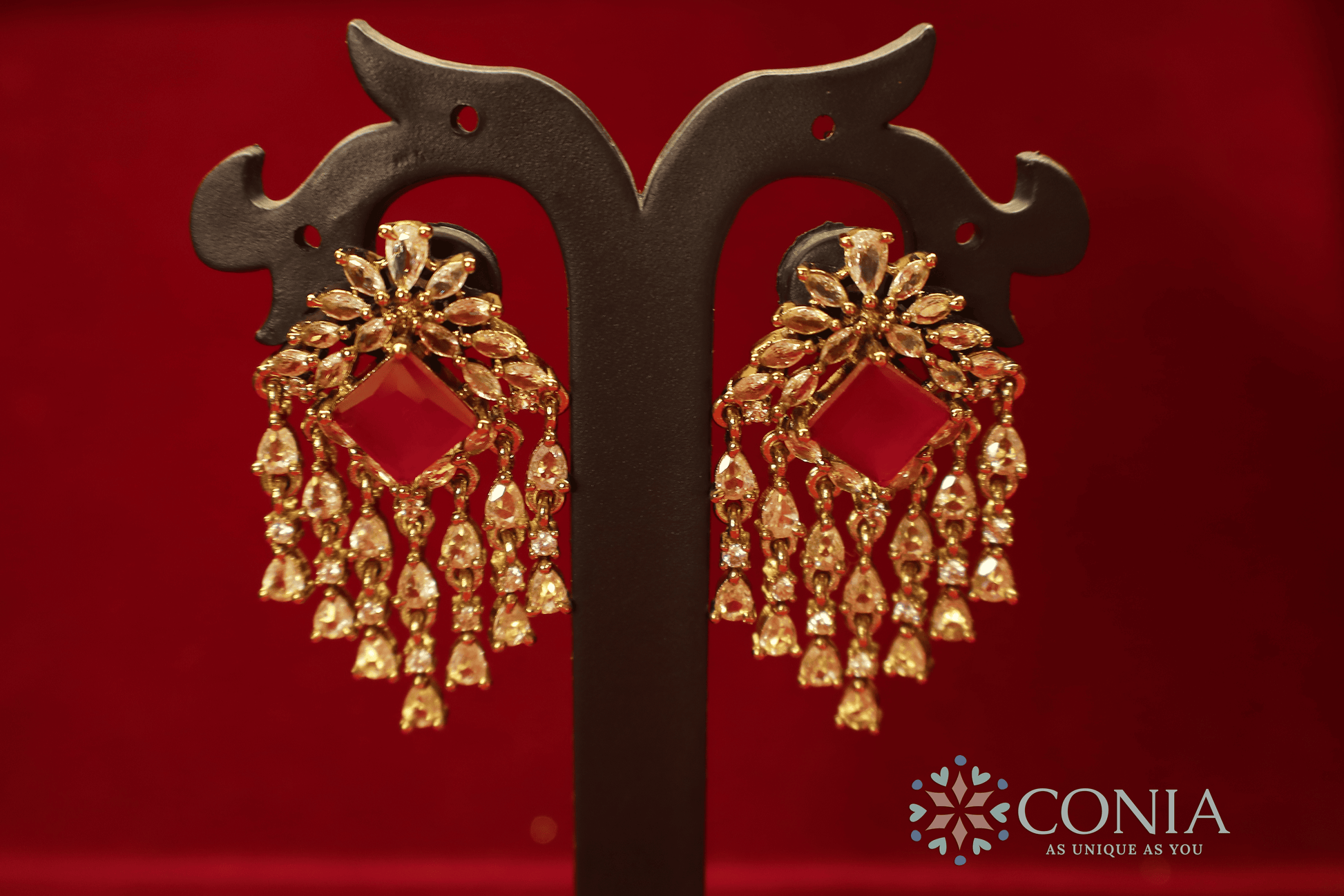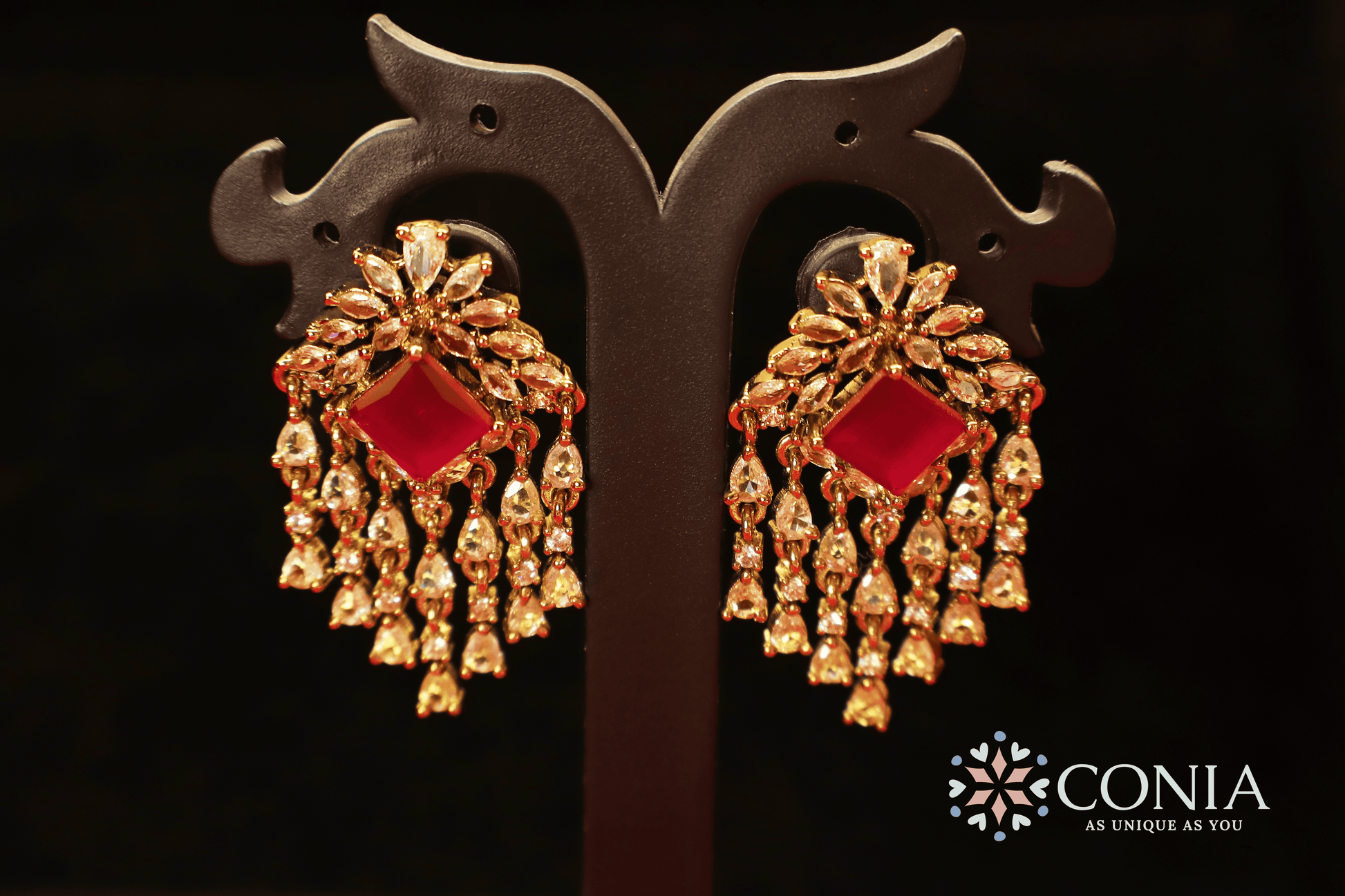 Reminiscent of royal jewels from the Victorian age, these earrings exude timeless sophistication. The radiant ruby centerpiece and cascading crystal drops make them a statement of pure elegance and legacy charm.